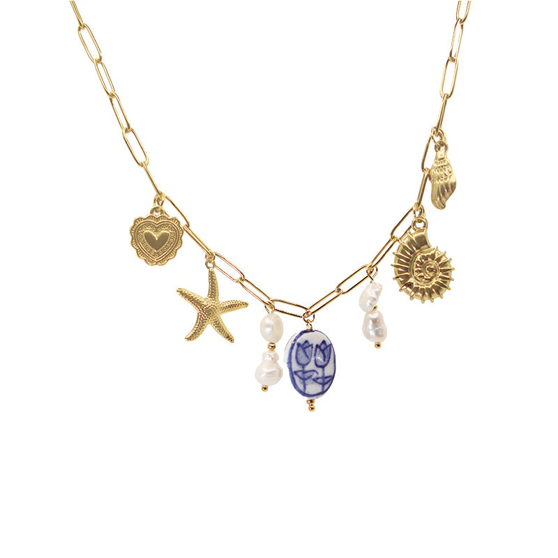 The Pearl Bay Charm Necklace is a serene tribute to the beauty of coastal living. Adorned with lustrous pearls, delicate shells, and a charming mix of ocean-inspired ceramic and heart charms, this necklace captures the essence of a peaceful bay retreat. The perfect balance of elegance and natural beauty, it evokes the tranquil allure of the sea, making it an ideal accessory for those who love to carry a piece of paradise with them wherever they go. Let the calming vibes of Pearl Bay accompany you on every adventure.